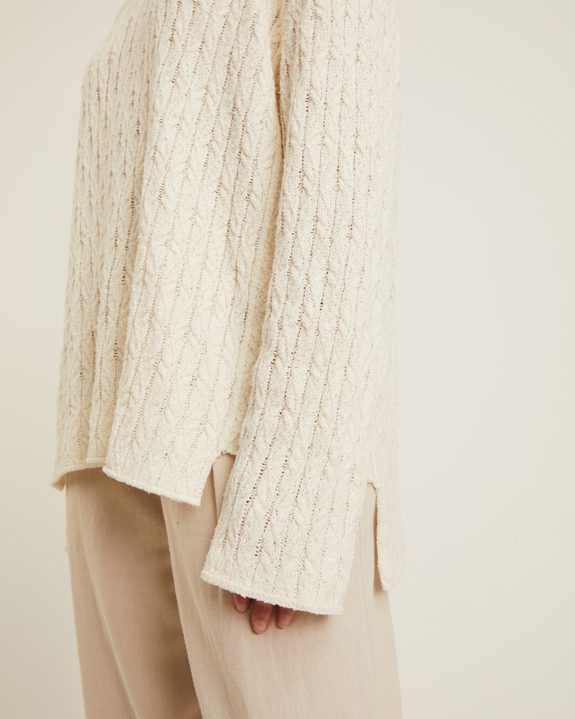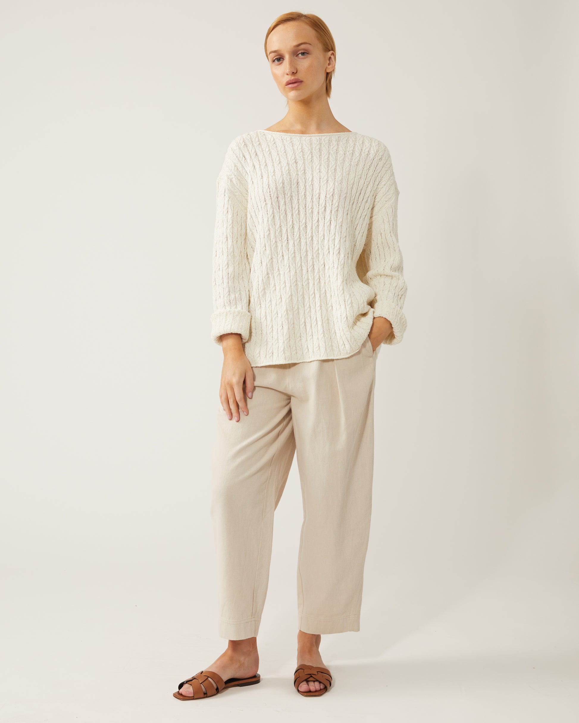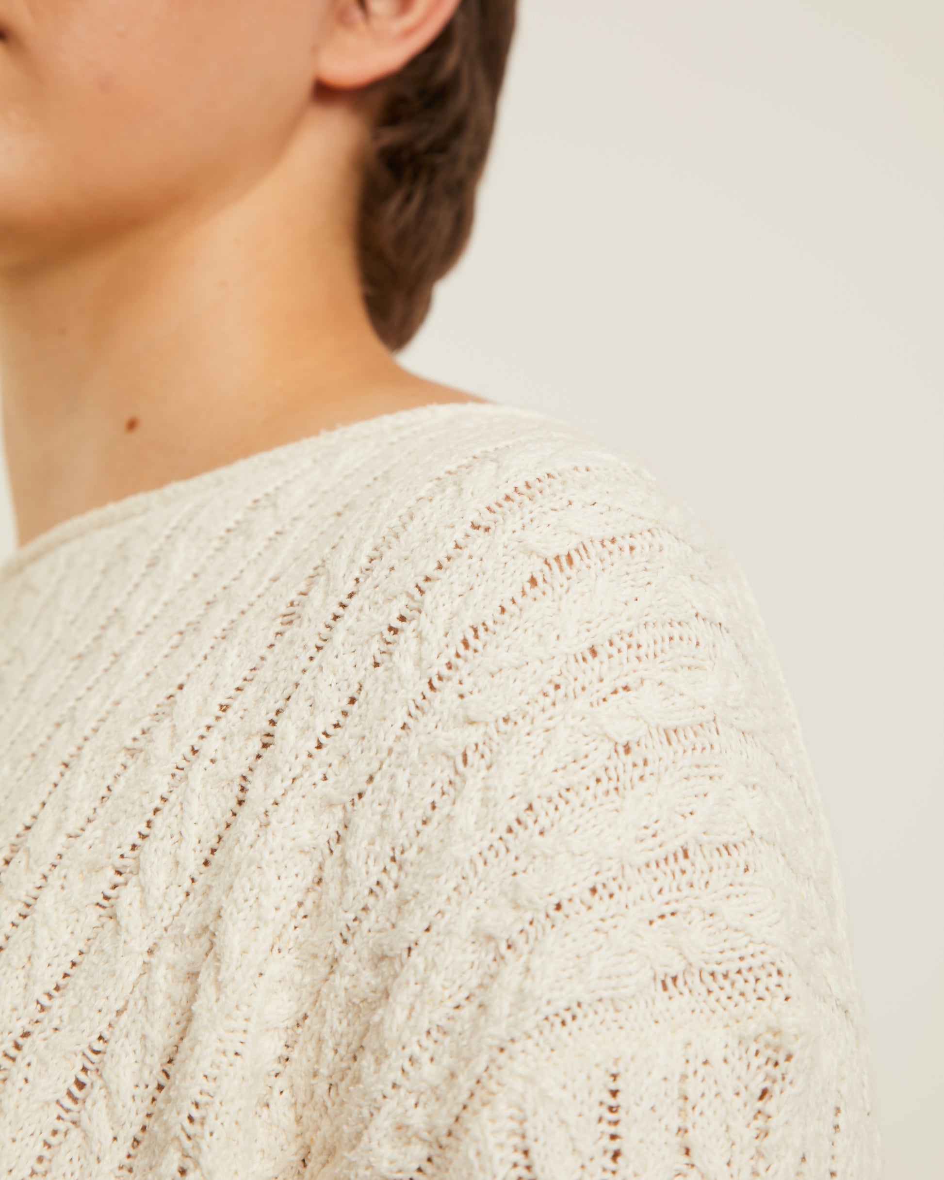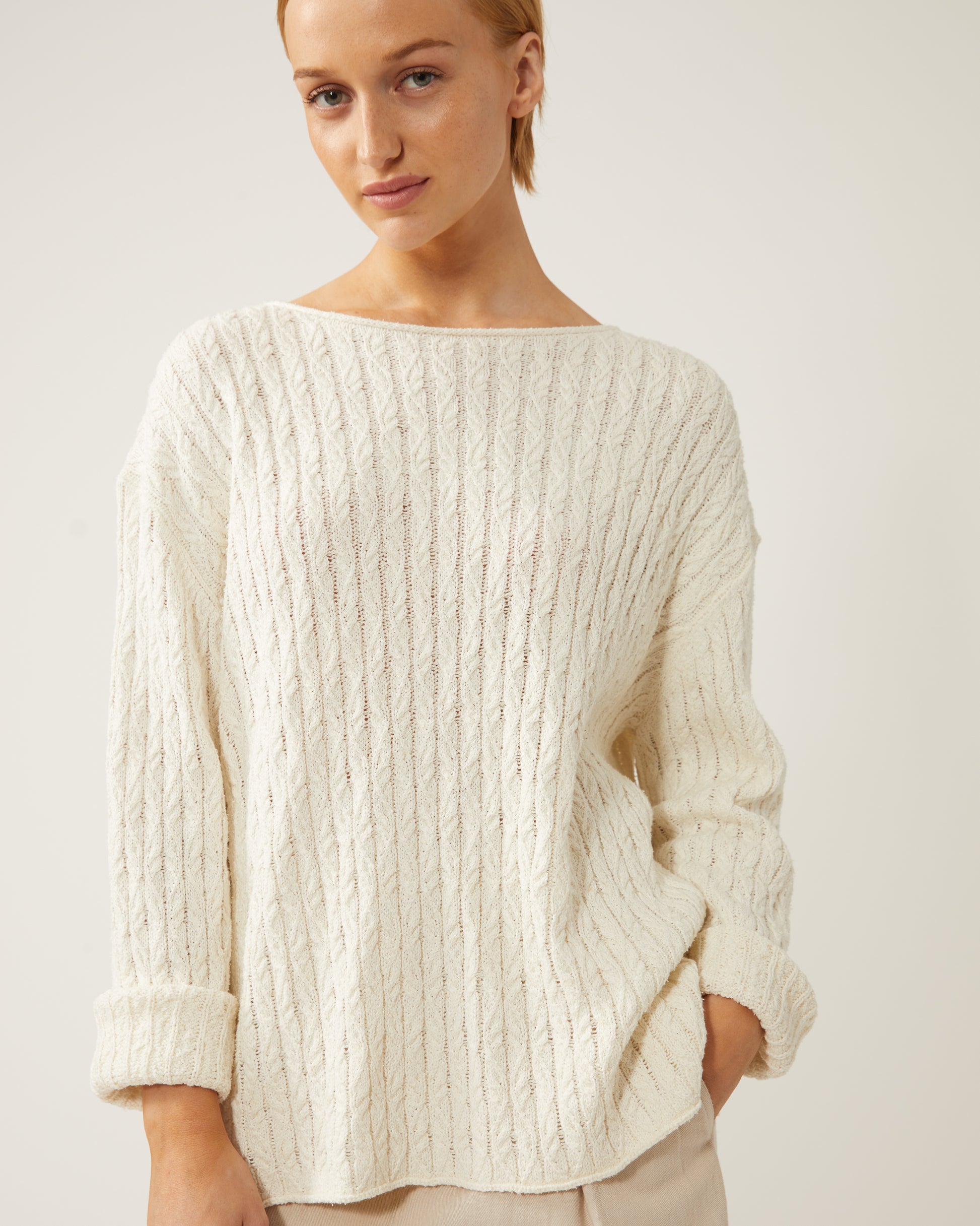 chandail en coton et soie à col bateau et maille torsadée JUDE