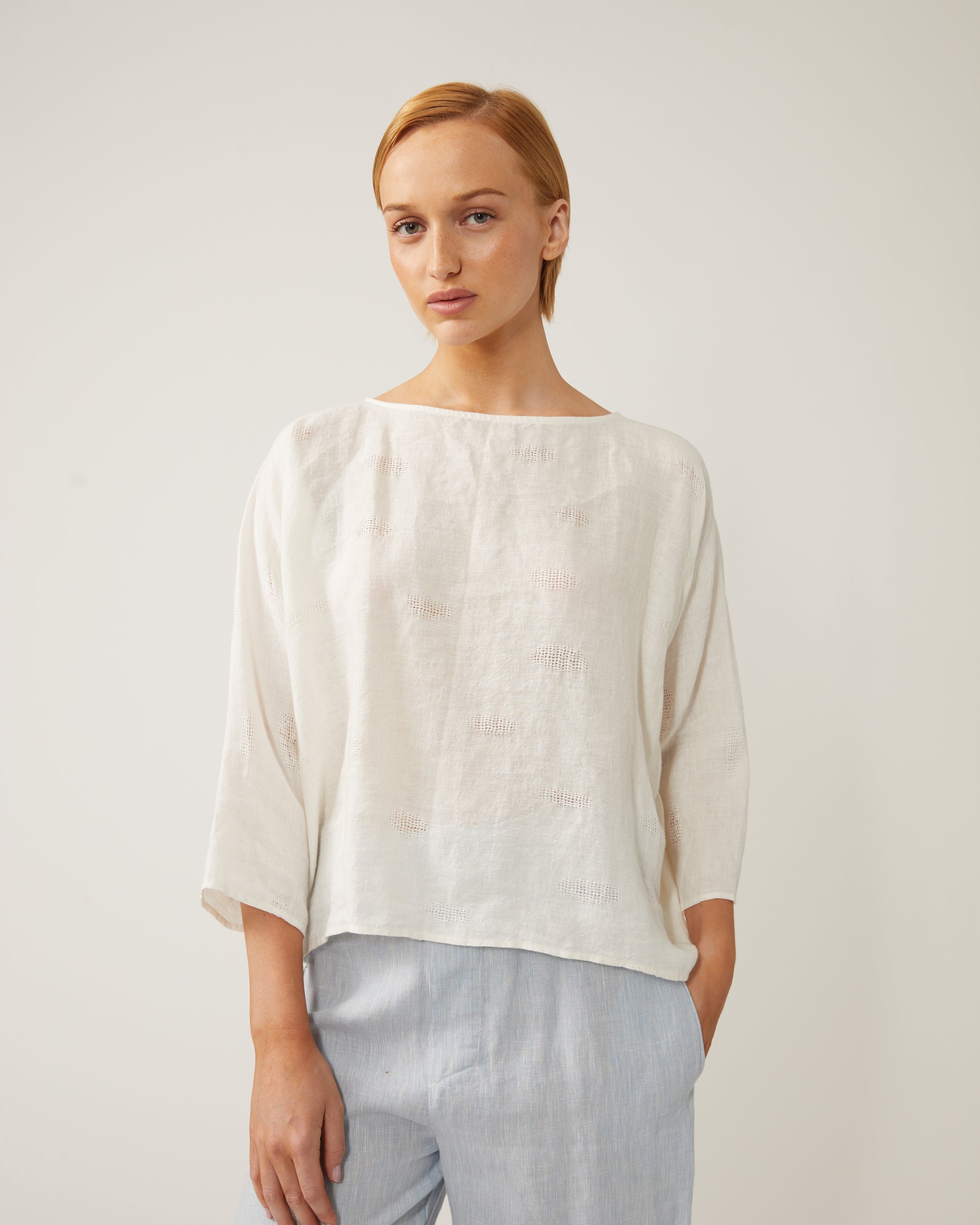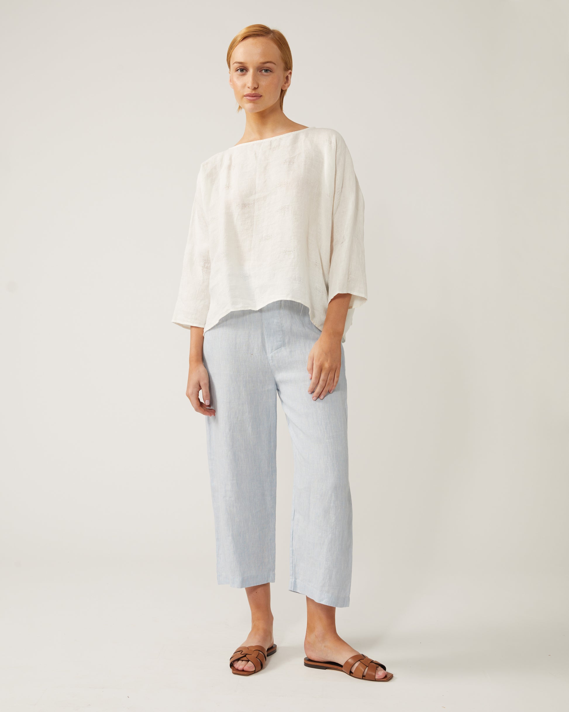 top TAMARA en lin avec détails ajourés