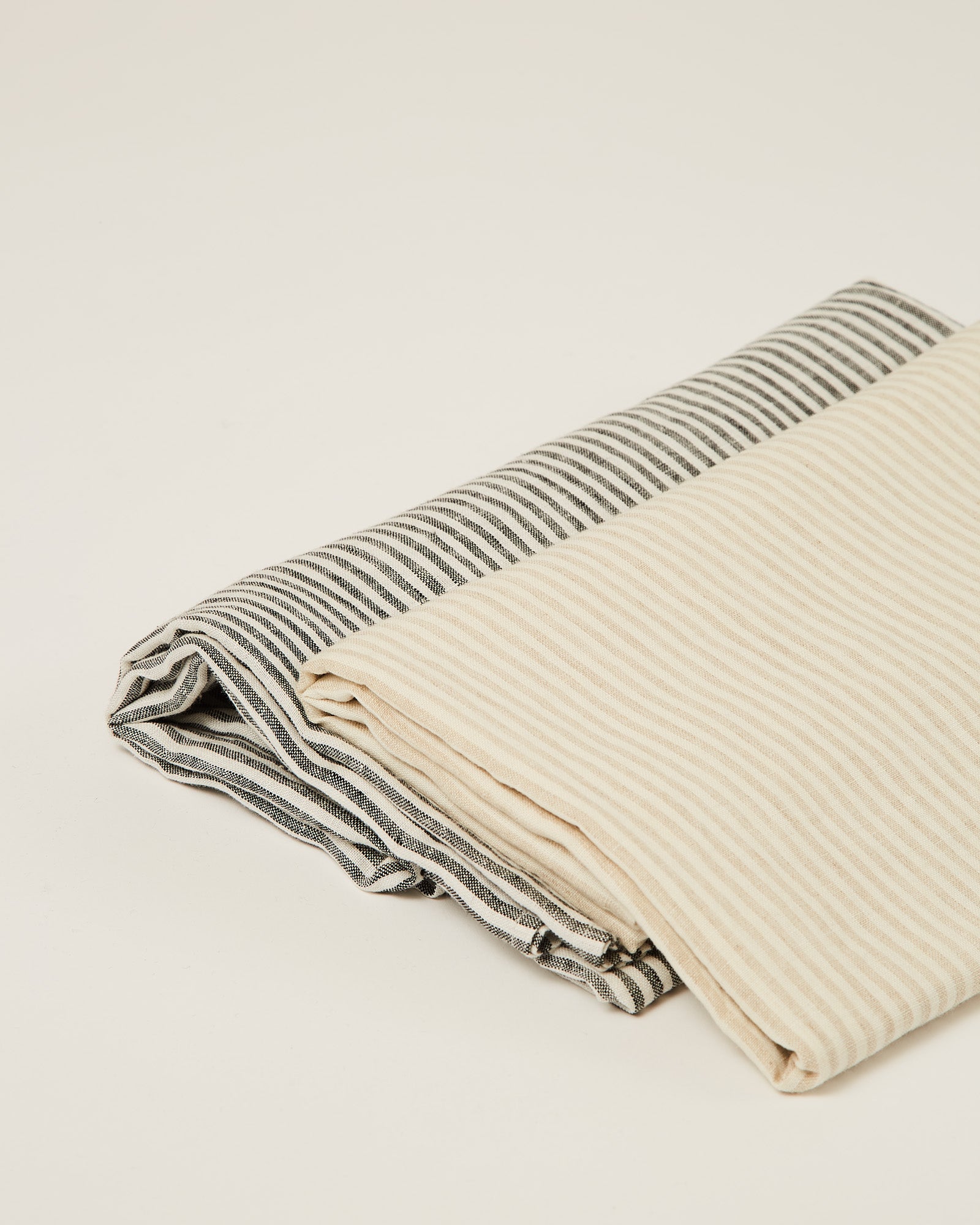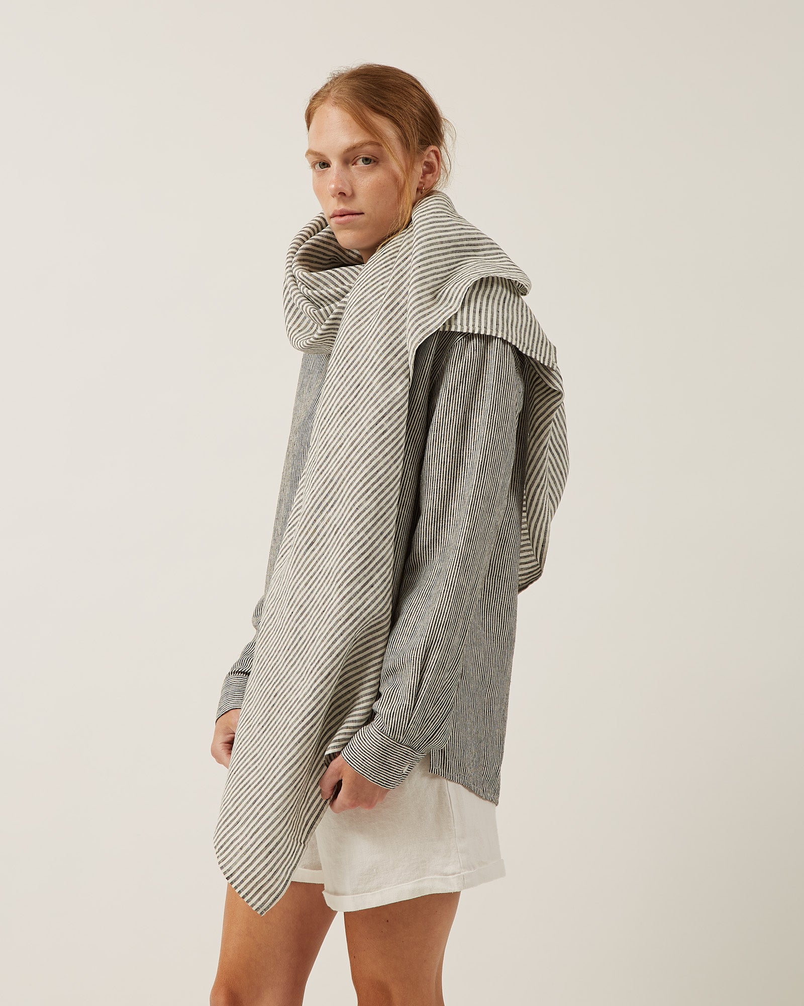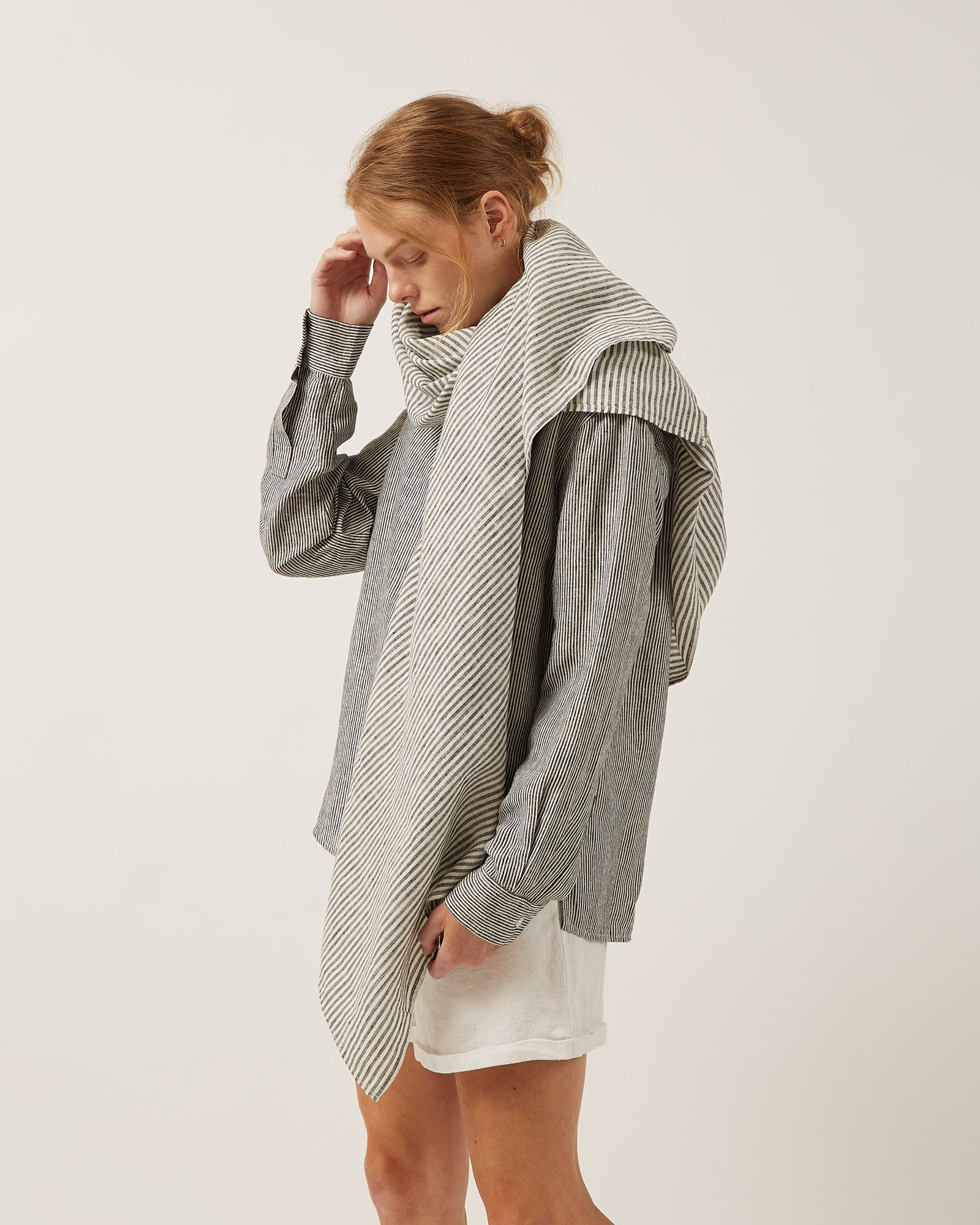 | A MON PROPOS Je suis fait à 100% de lin Le modèle porte la couleur Black / White CHOUCHOUTEZ-MOI Je préfère être lavé à la main. Faites-moi prendre un bain savonneux dans une eau tempérée 15 minutes sans frotter. |
